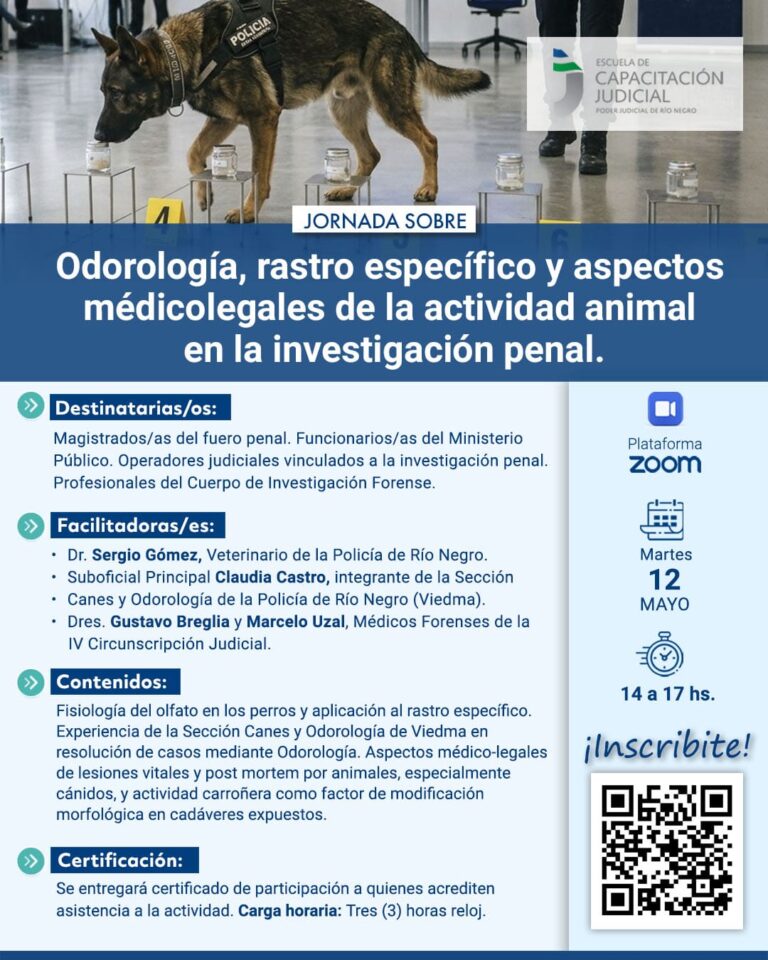 La Escuela de Capacitación Judicial invita a la jornada sobre Odorología, rastro específico y aspectos médico-legales de la actividad animal en la investigación penal