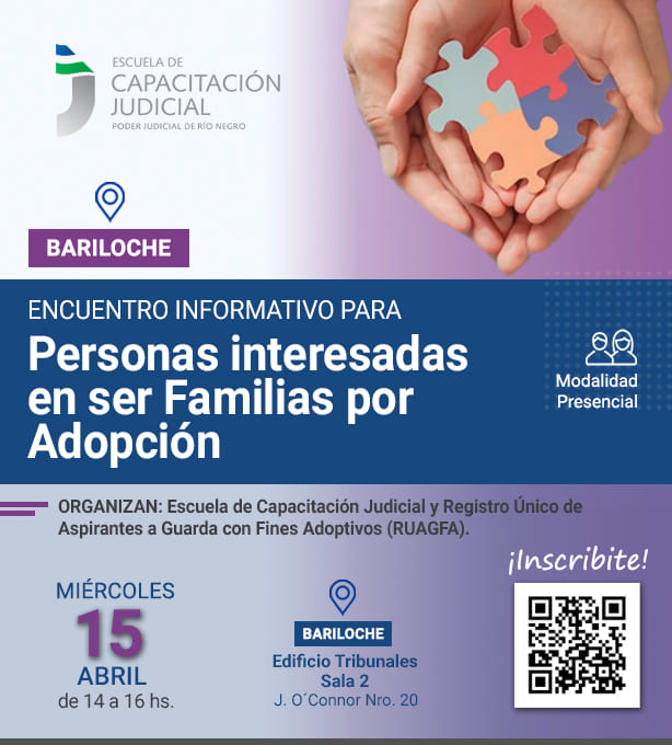 Desde la Escuela de Capacitación Judicial y el Registro Único de Aspirantes a Guarda con Fines Adoptivos (RUAGFA) invitamos a participar de este espacio destinado a brindar información y responder consultas sobre el proceso de adopción.