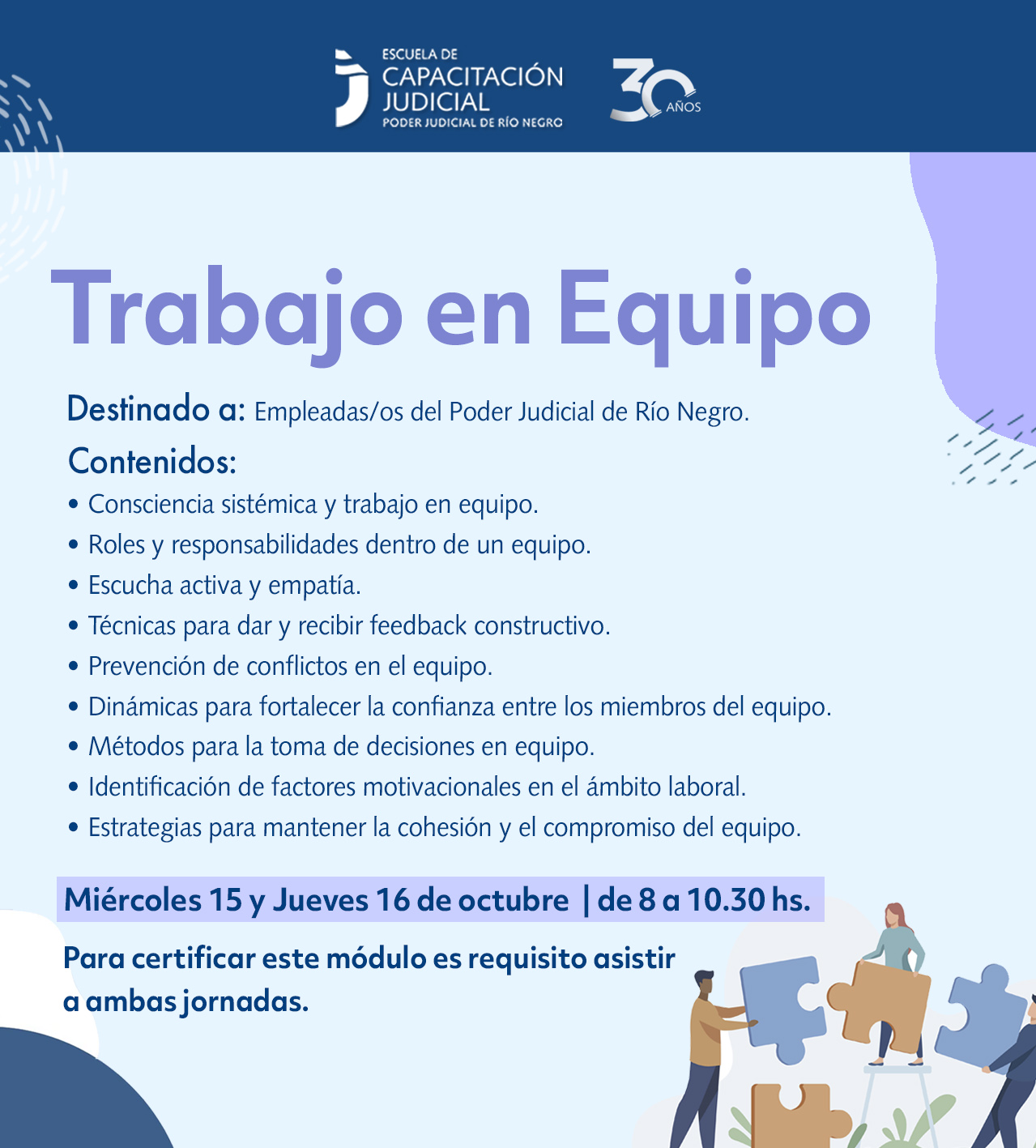 📌 Trabajo en Equipo – Miércoles 15 y Jueves 16 de octubre | 08:00 a 10:30 hs