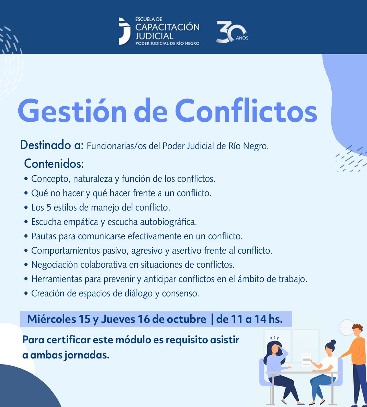 📌 Gestión de Conflictos – Miércoles 15 y Jueves 16 de octubre | 11:00 a 14:00 hs